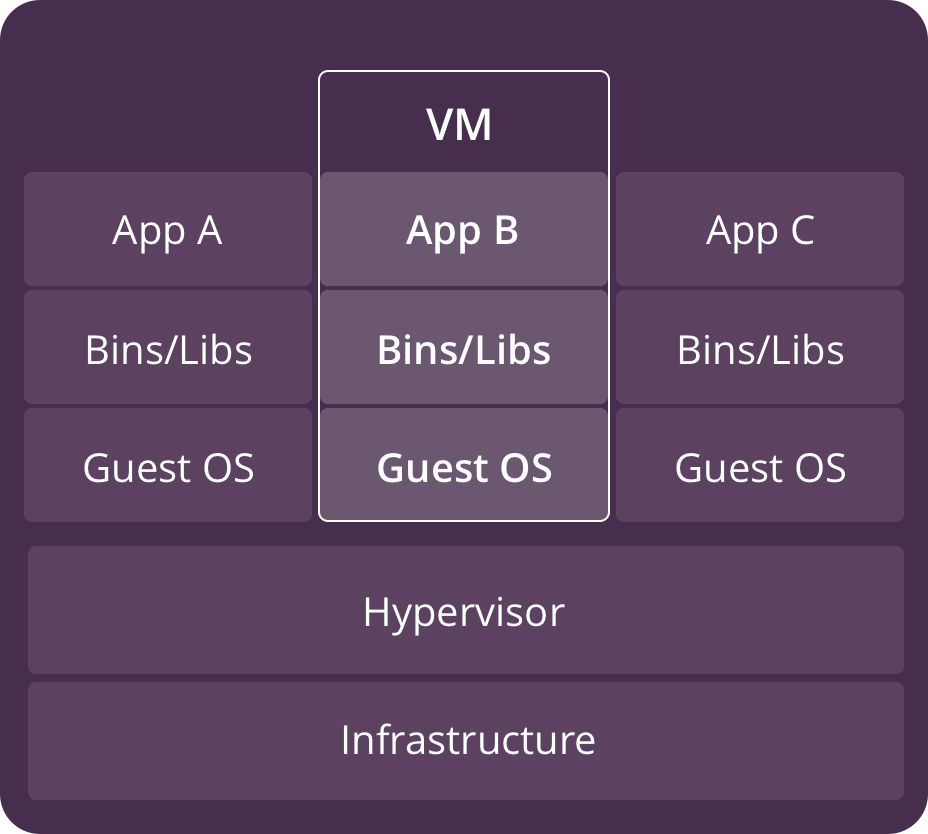 虚拟机(VM)是一种创建于物理硬件系统(位于外部或内部)、充当虚拟计算机系统的虚拟环境,它模拟出了自己的整套硬件,包括 CPU、内存、网络接口和存储器。需要系统管理程序或虚拟机监视器(Hypervisor)作为中间层