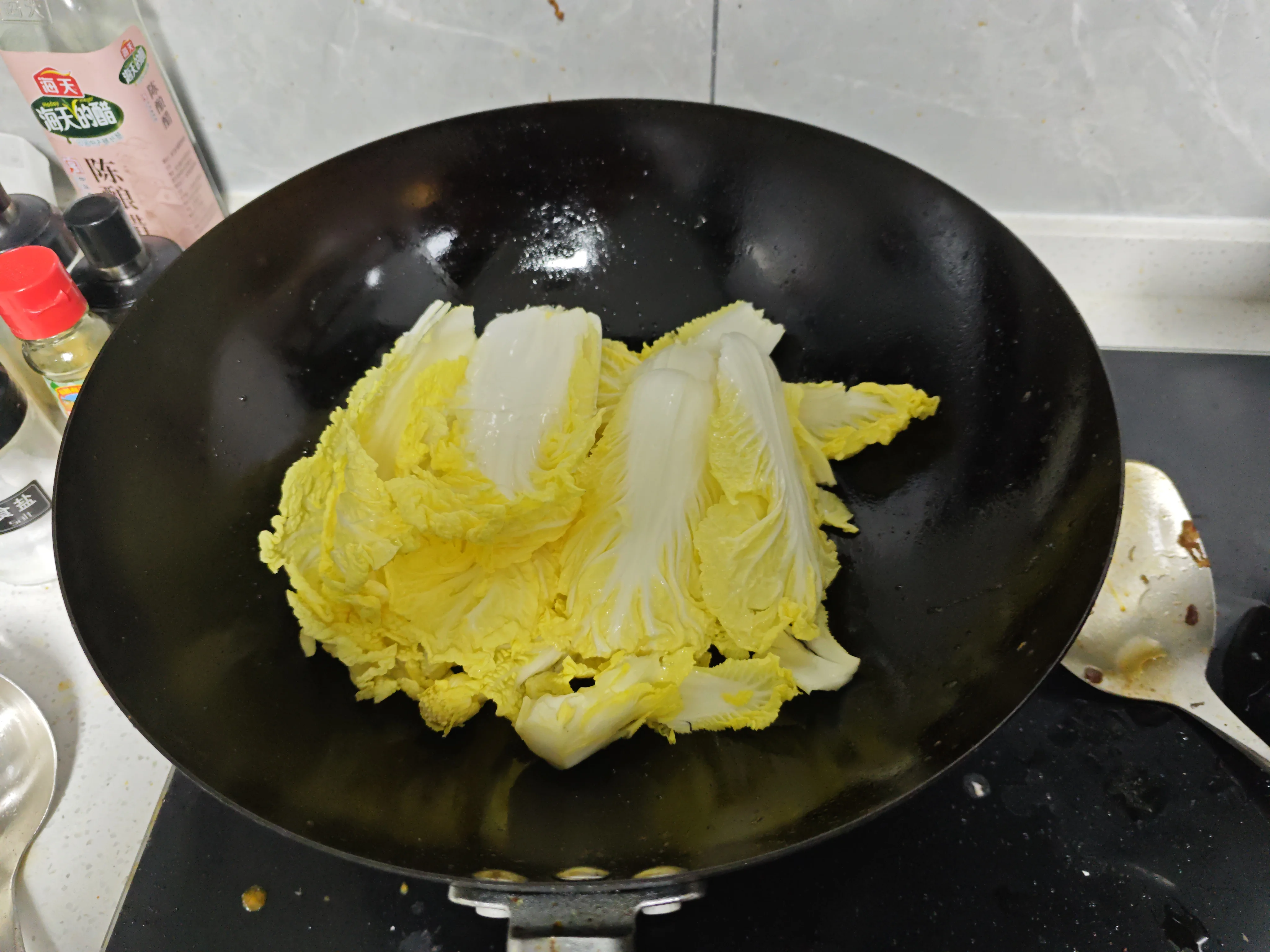 - 加调料加葱姜蒜,翻炒均匀