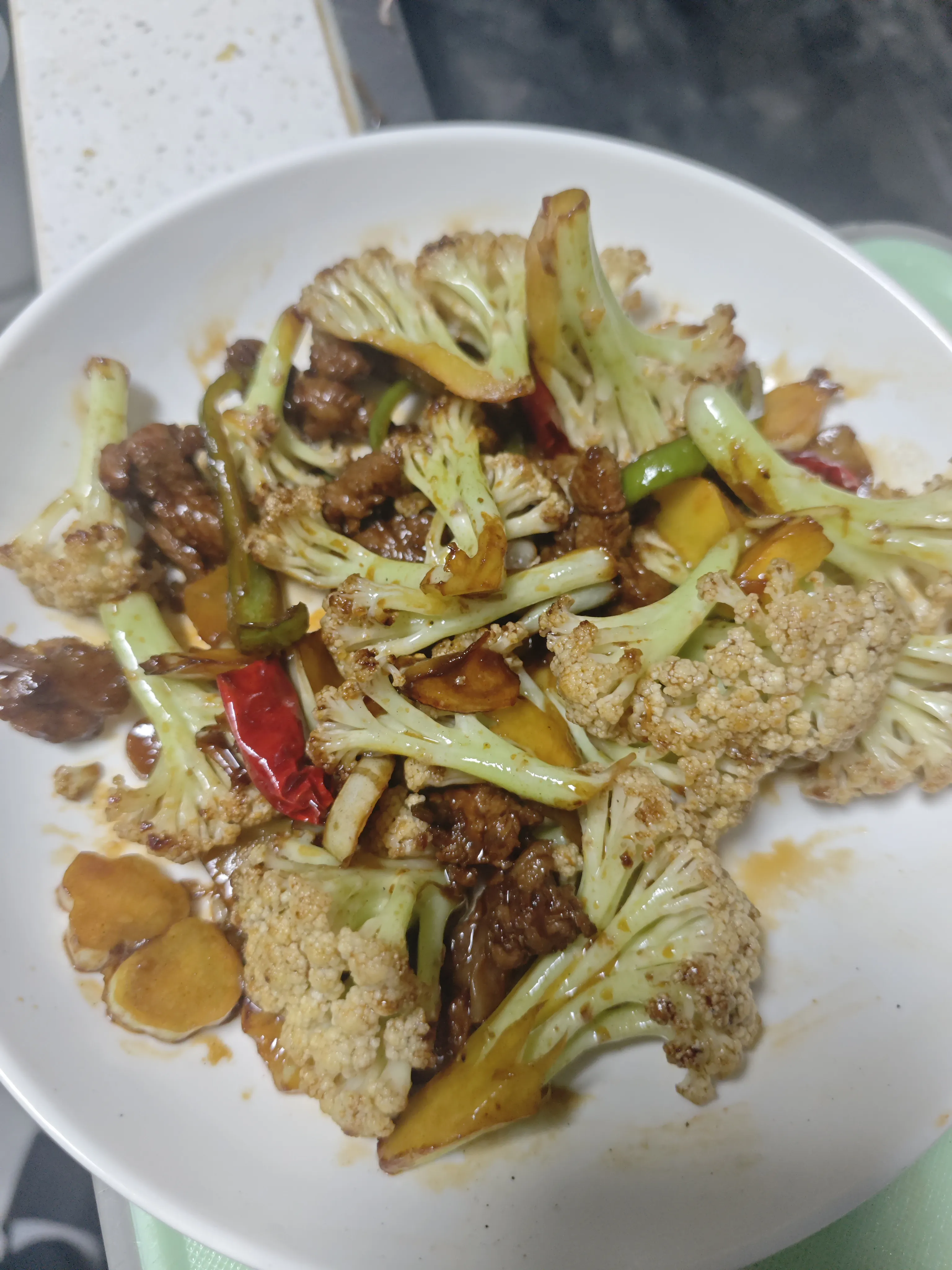 干锅花菜 发表于 2025/09/23 更新于 2025/10/08 作者 Kai 1 分钟阅读 干锅花菜 文章内容 干锅花菜 材料花菜瘦肉蒜,青椒,辣椒生抽,老抽,料酒,盐,蚝油,糖准备花菜切开洗净,在盐水中浸泡一会,晾干15分钟切点碎肉步骤起锅烧油,加花菜,炒至稍微有点焦,盛盘起锅烧油,炒肉,加青椒,辣椒,大蒜,翻炒均匀加花菜,翻炒一分钟,加生抽,老抽,料酒,盐,蚝油,糖,翻炒后盛出 卫宫家今天的饭 花菜 本文由作者按照 CC BY-SA 4.0 进行授权 分享