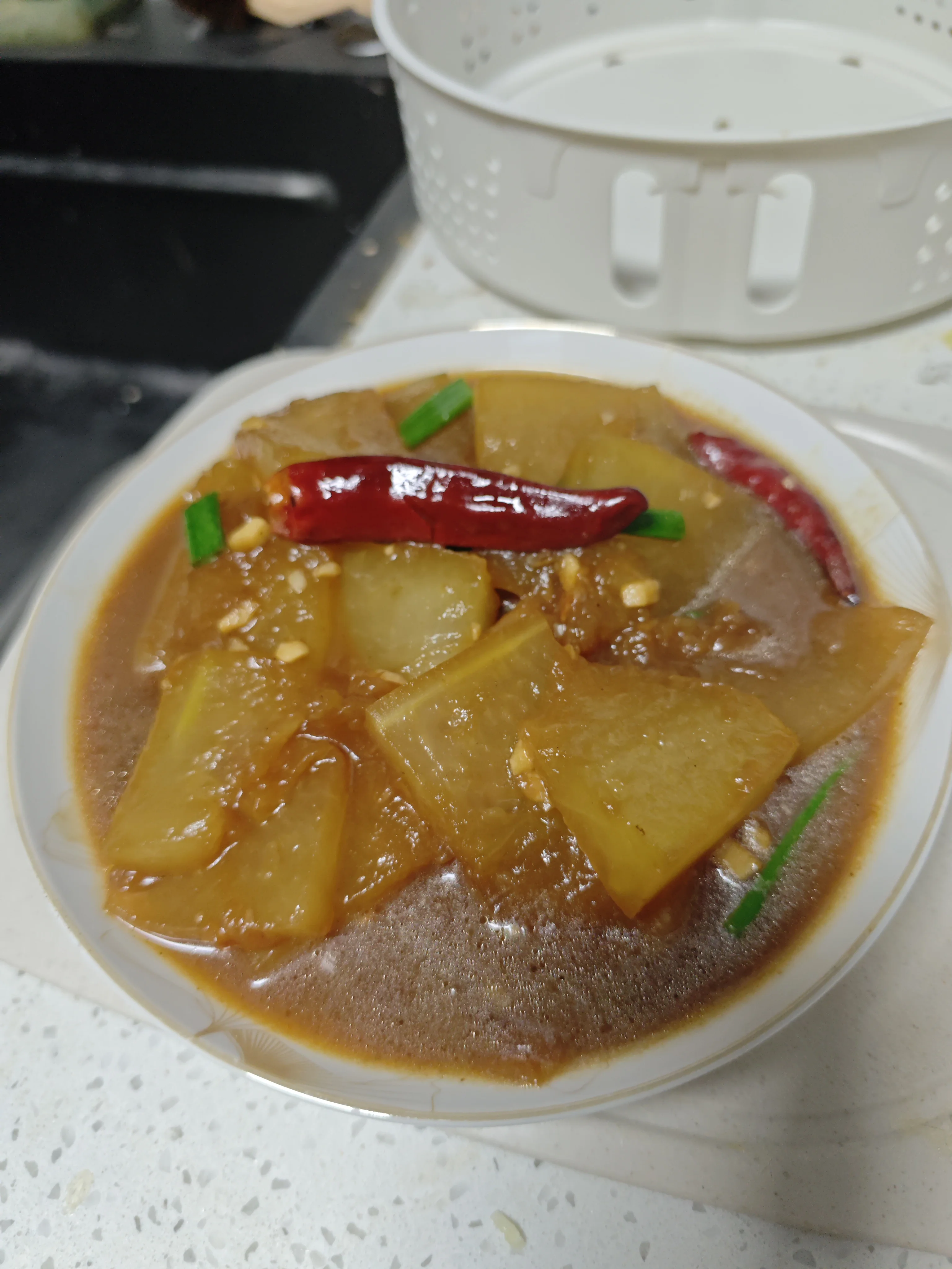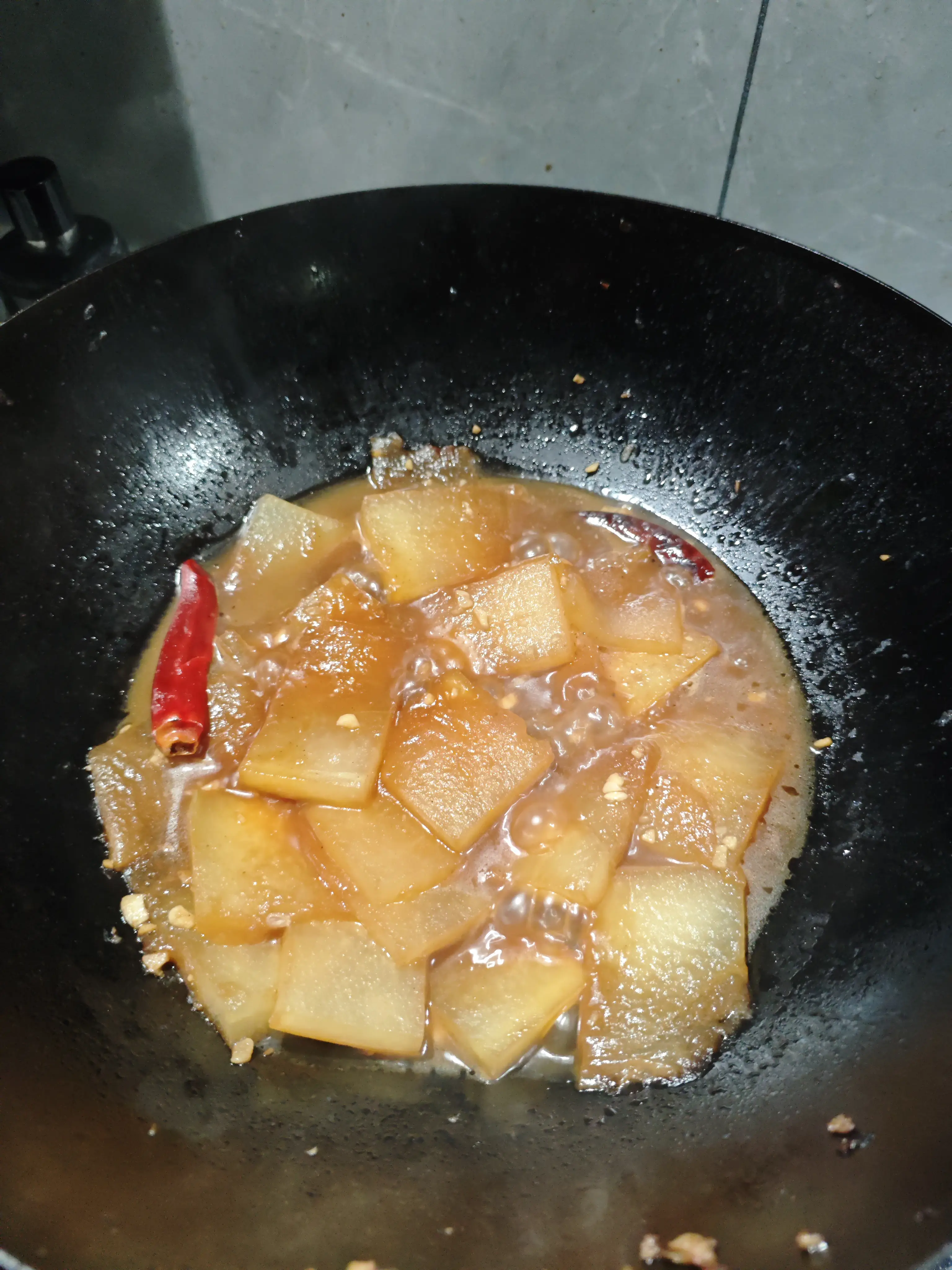 红烧冬瓜 发表于 2025/06/05 作者 Kai 1 分钟阅读 红烧冬瓜 文章内容 红烧冬瓜 材料冬瓜蒜,干辣椒生抽,老抽,蚝油,盐准备冬瓜去皮切块切蒜末,准备干辣椒步骤油热加蒜和辣椒倒入冬瓜翻炒加生抽,老抽,蚝油,盐,翻炒均匀加入适量清水,中小火焖煮十分钟,冬瓜烧软了就行 卫宫家今天的饭 冬瓜 本文由作者按照 CC BY-SA 4.0 进行授权 分享
