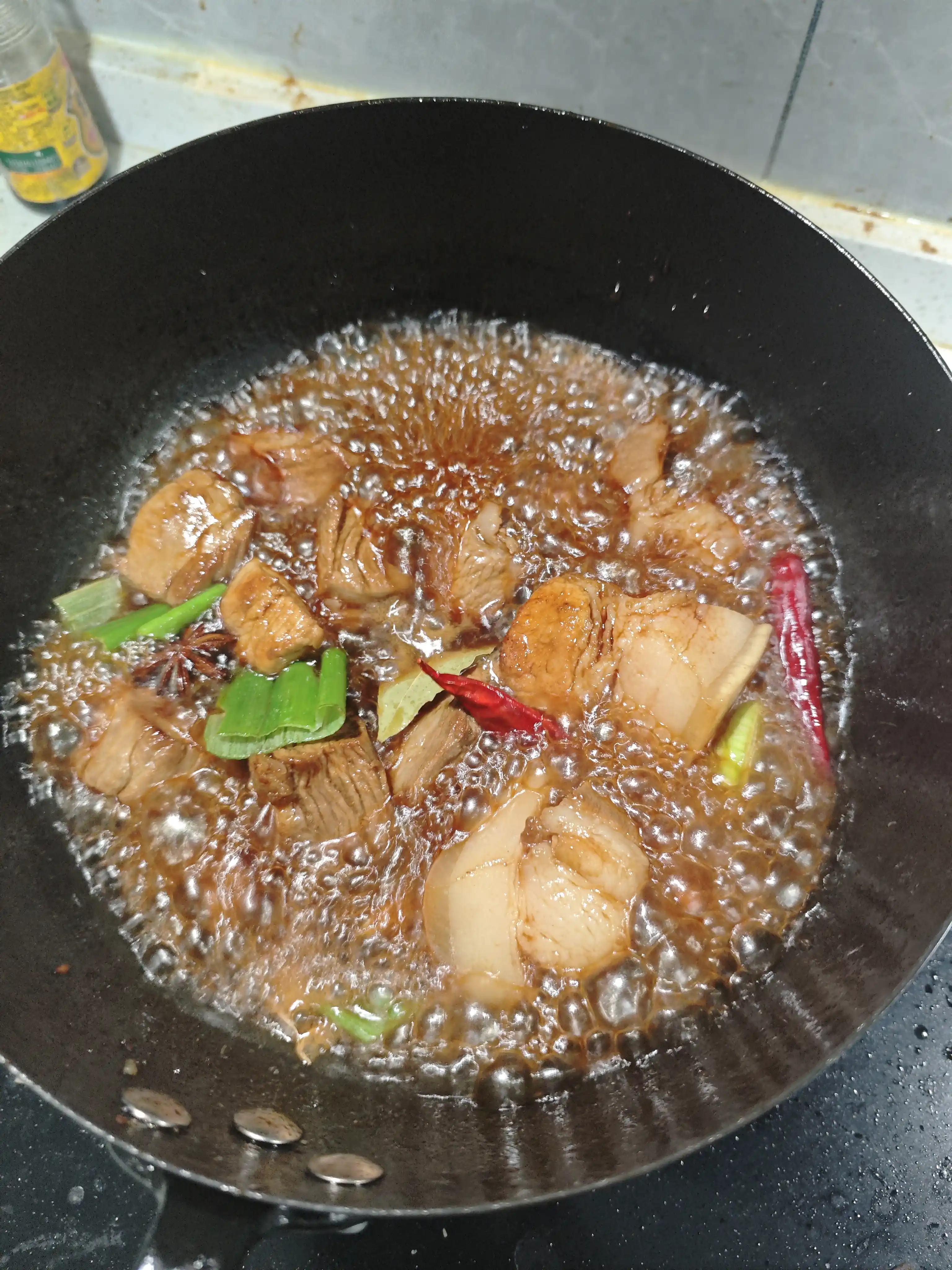 - 炒糖色(可选,若觉得太困难可仅用老抽调色,该步骤替换为加油直接炒)