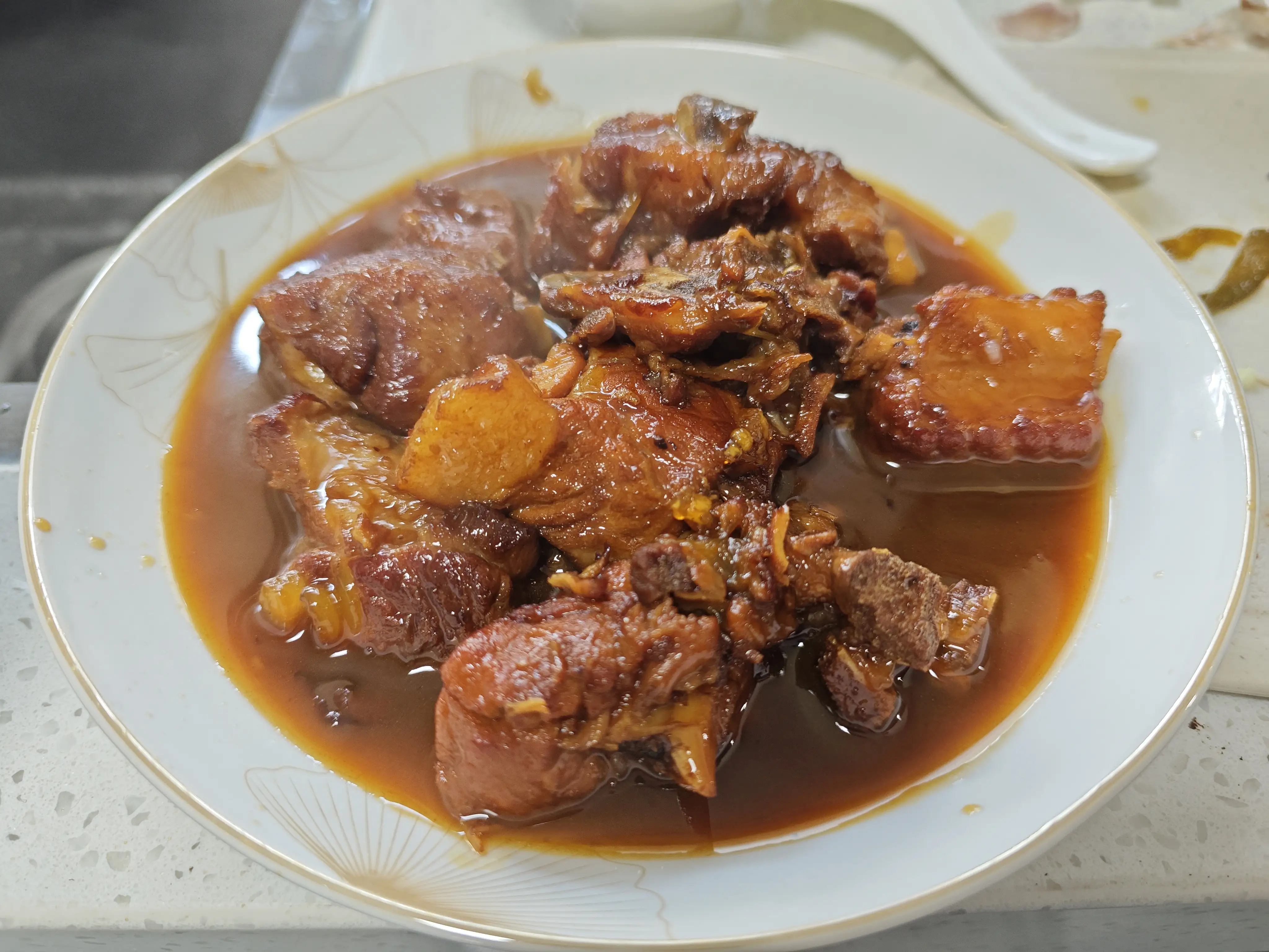 糖醋排骨 发表于 2025/03/08 作者 Kai 1 分钟阅读 糖醋排骨 文章内容 糖醋排骨 材料排骨姜,葱,八角料酒,蚝油,生抽,冰糖,醋(最好香醋)准备排骨切成小块姜切片,葱切小段调料碗中放入一勺料酒,一勺蚝油,两勺生抽,三勺冰糖,四勺醋步骤烧开水,加入排骨、姜、料酒、葱,焯水后捞出加入油,然后加入冰糖炒糊,倒入排骨,炒个糖色加入姜片,葱,八角炒香加入开水,加入调料煮沸后转移到高压锅中,煲40分钟最后放回锅中大火收汁,取出葱姜 卫宫家今天的饭 排骨 本文由作者按照 CC BY-SA 4.0 进行授权 分享