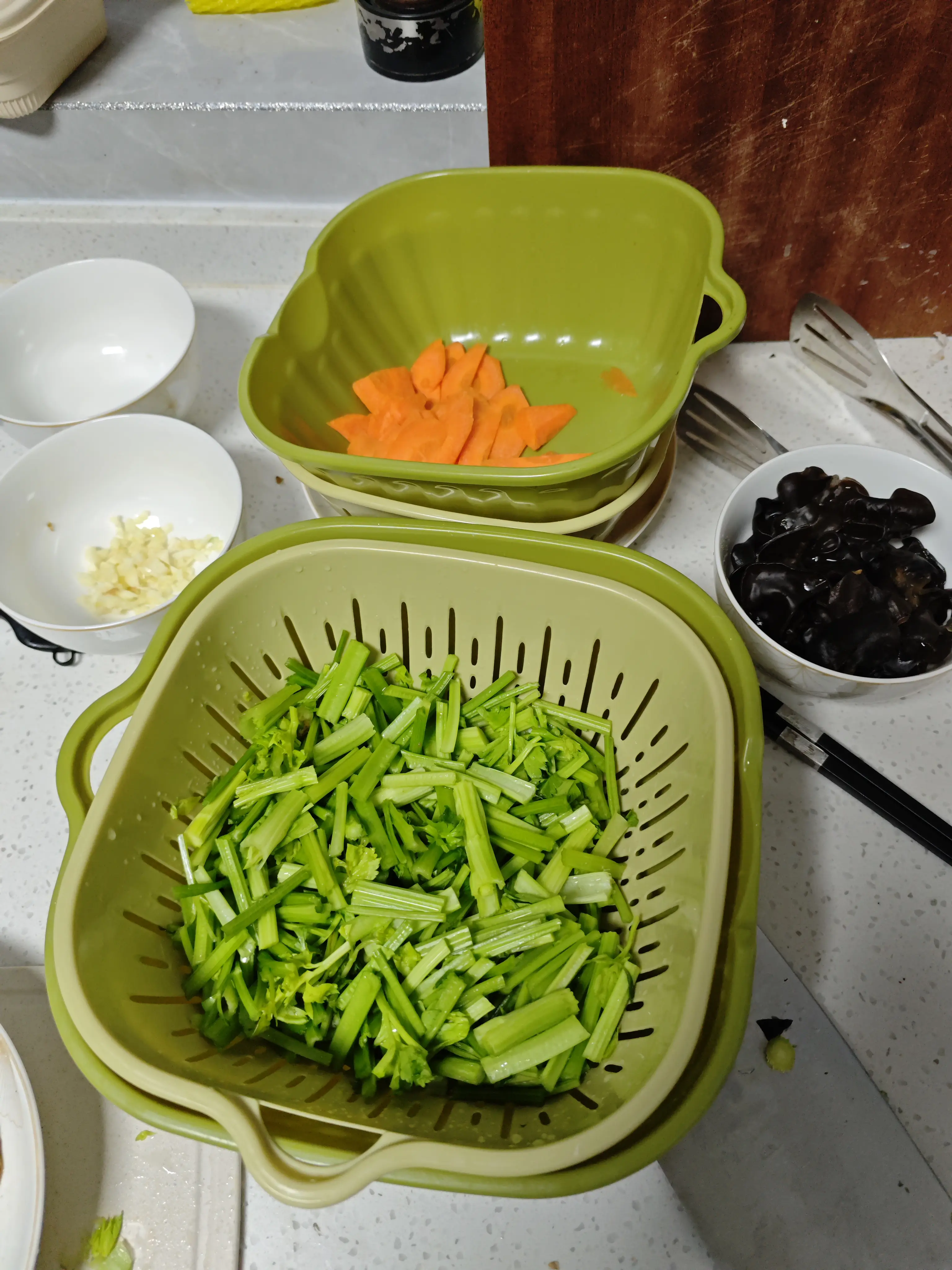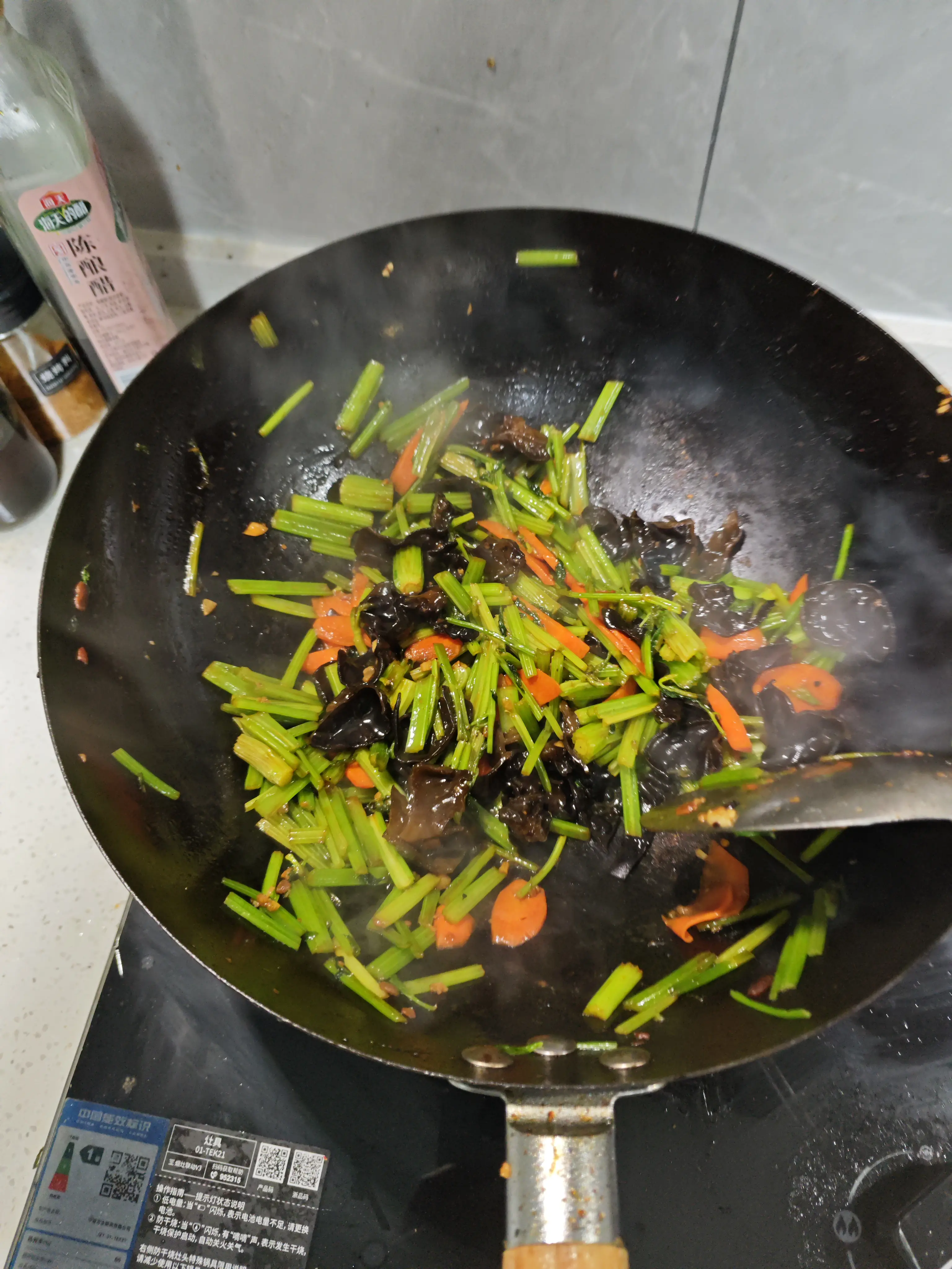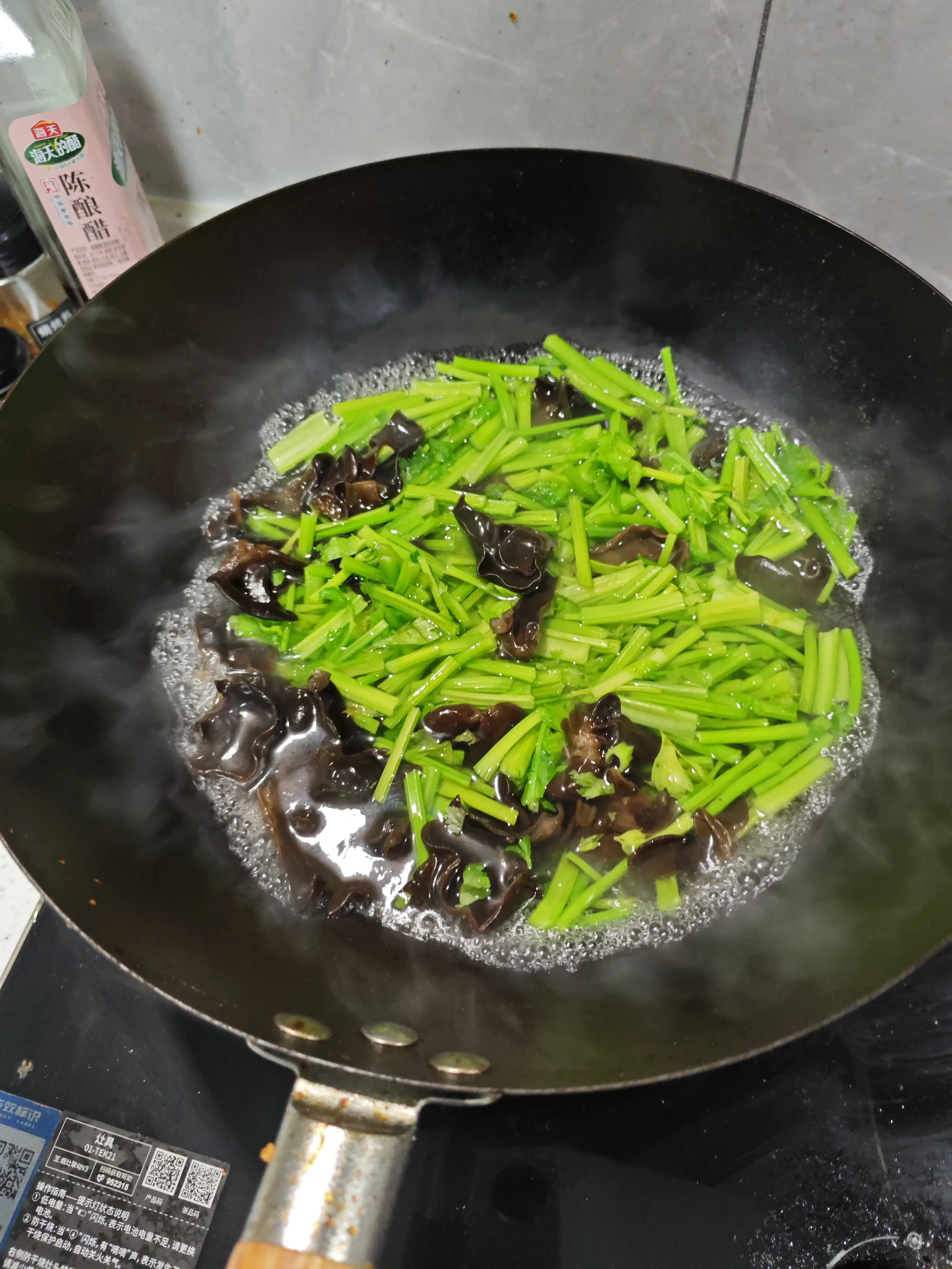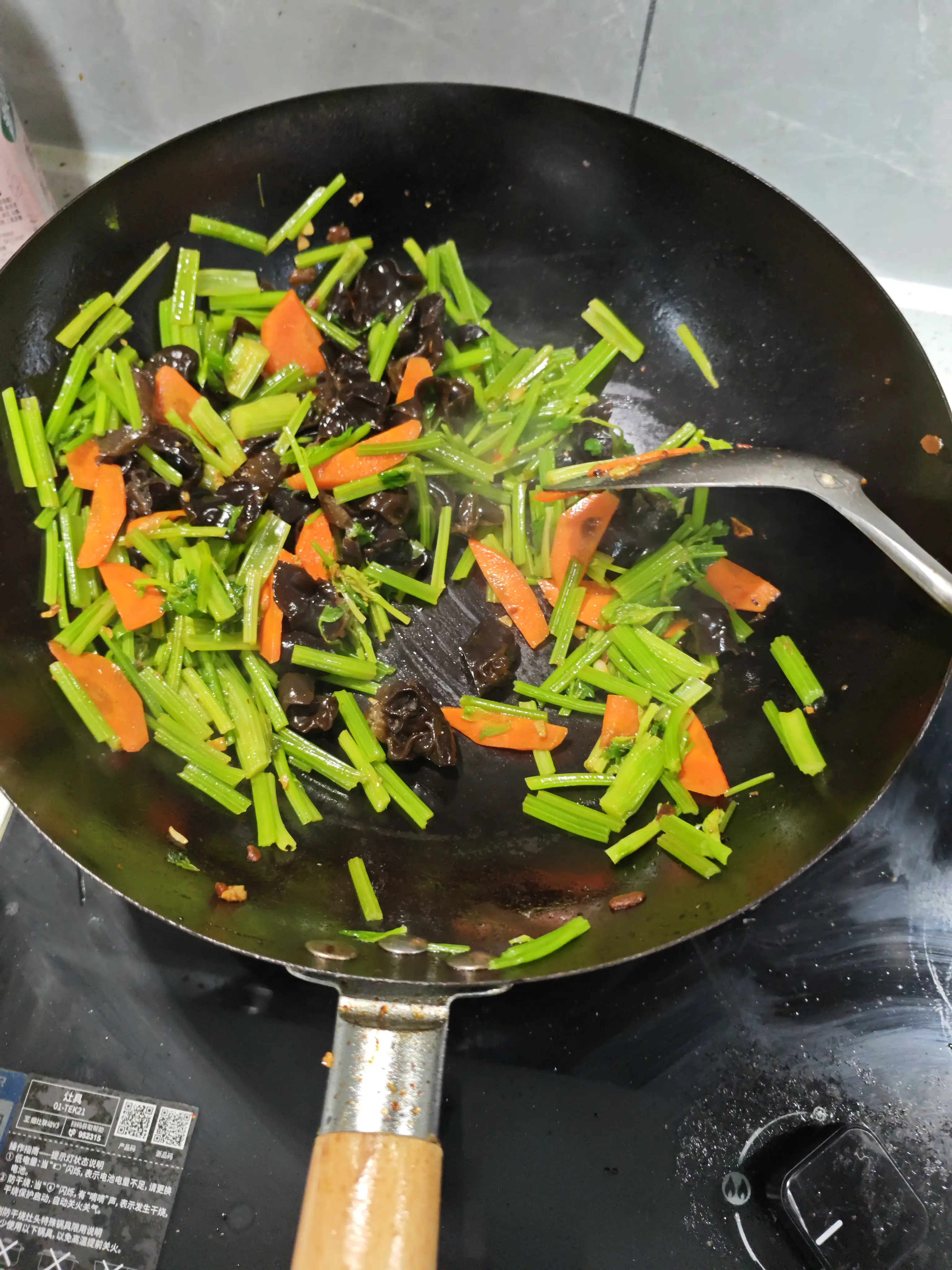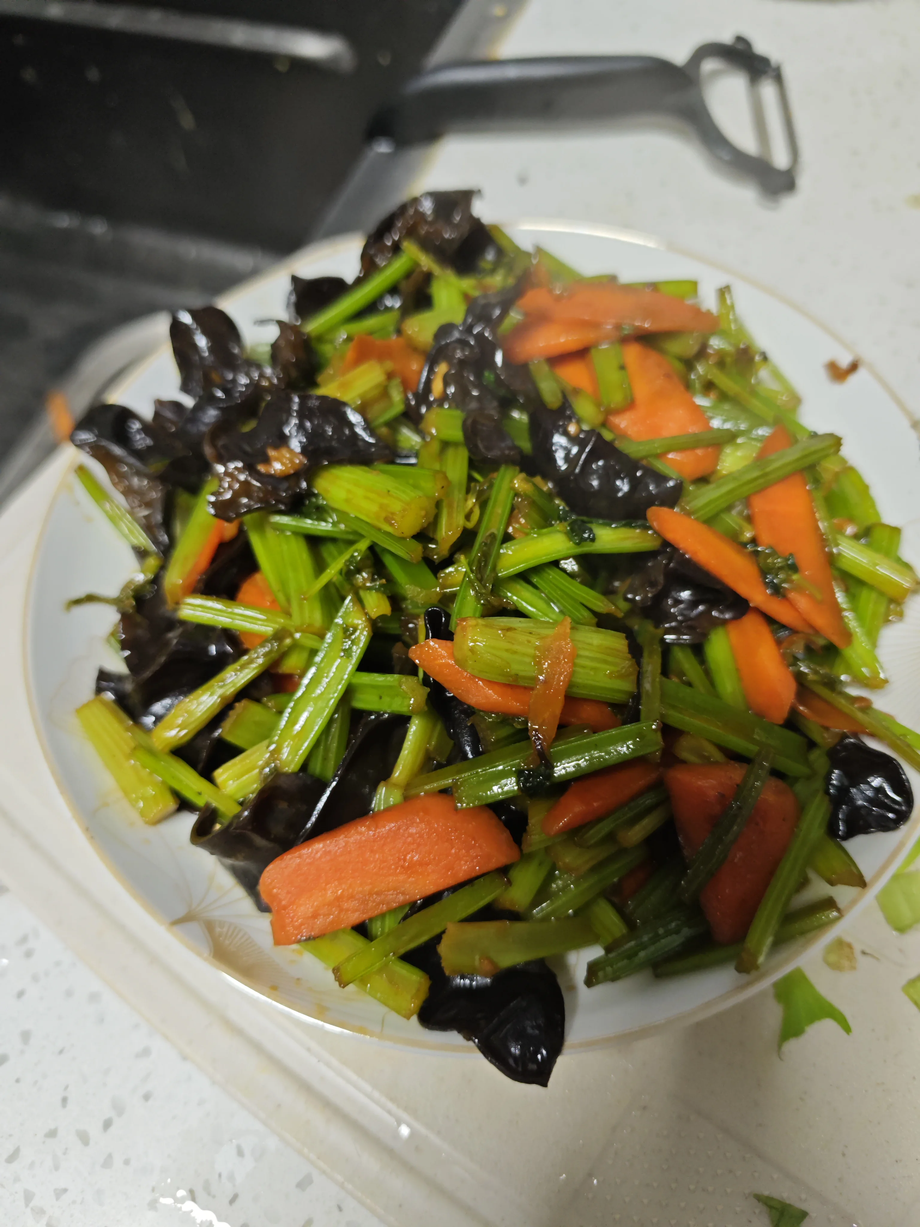 芹菜木耳 发表于 2025/05/06 作者 Kai 1 分钟阅读 芹菜木耳 文章内容 芹菜木耳 材料芹菜木耳胡萝卜大蒜酱油,淀粉,盐,水准备芹菜切段木耳泡开切碎胡萝卜切片大蒜切小粒料汁:酱油,淀粉,盐,水木耳和芹菜焯水,加点油,加点盐步骤油热加蒜爆香,加豆瓣酱加胡萝卜,炒两分钟加木耳和芹菜,继续翻炒两分钟加入调料汁继续翻炒,完成 卫宫家今天的饭 芹菜 本文由作者按照 CC BY-SA 4.0 进行授权 分享