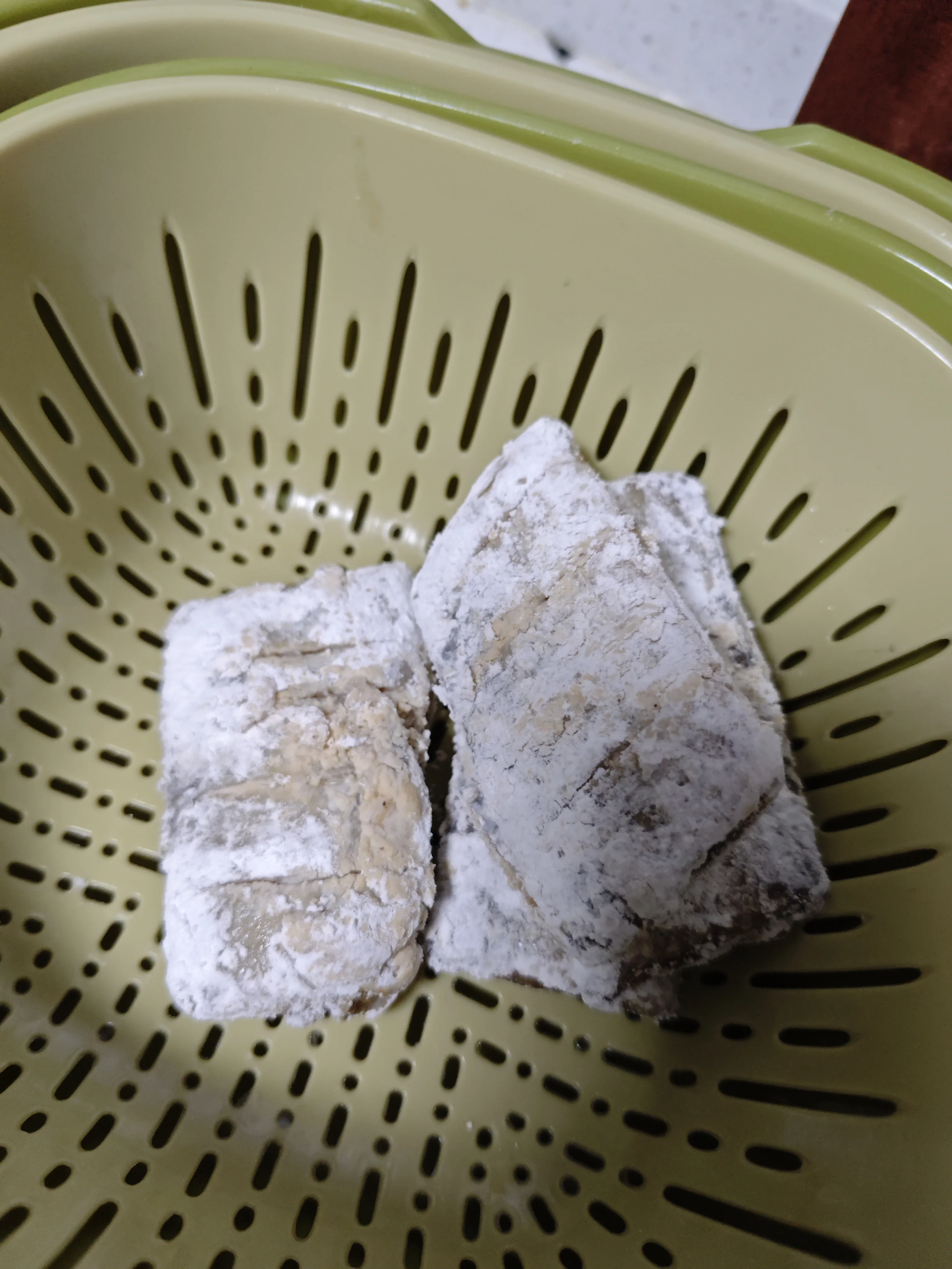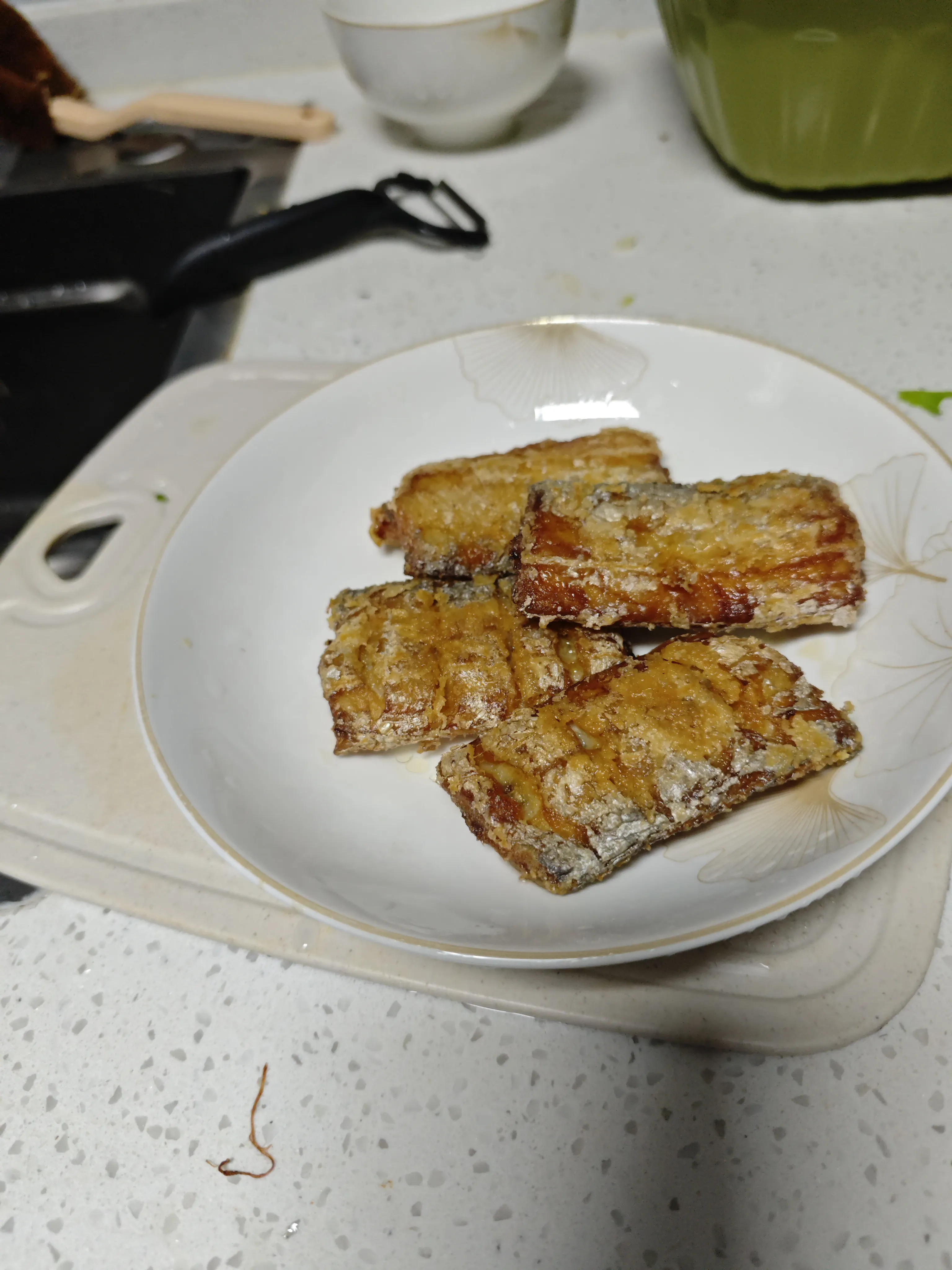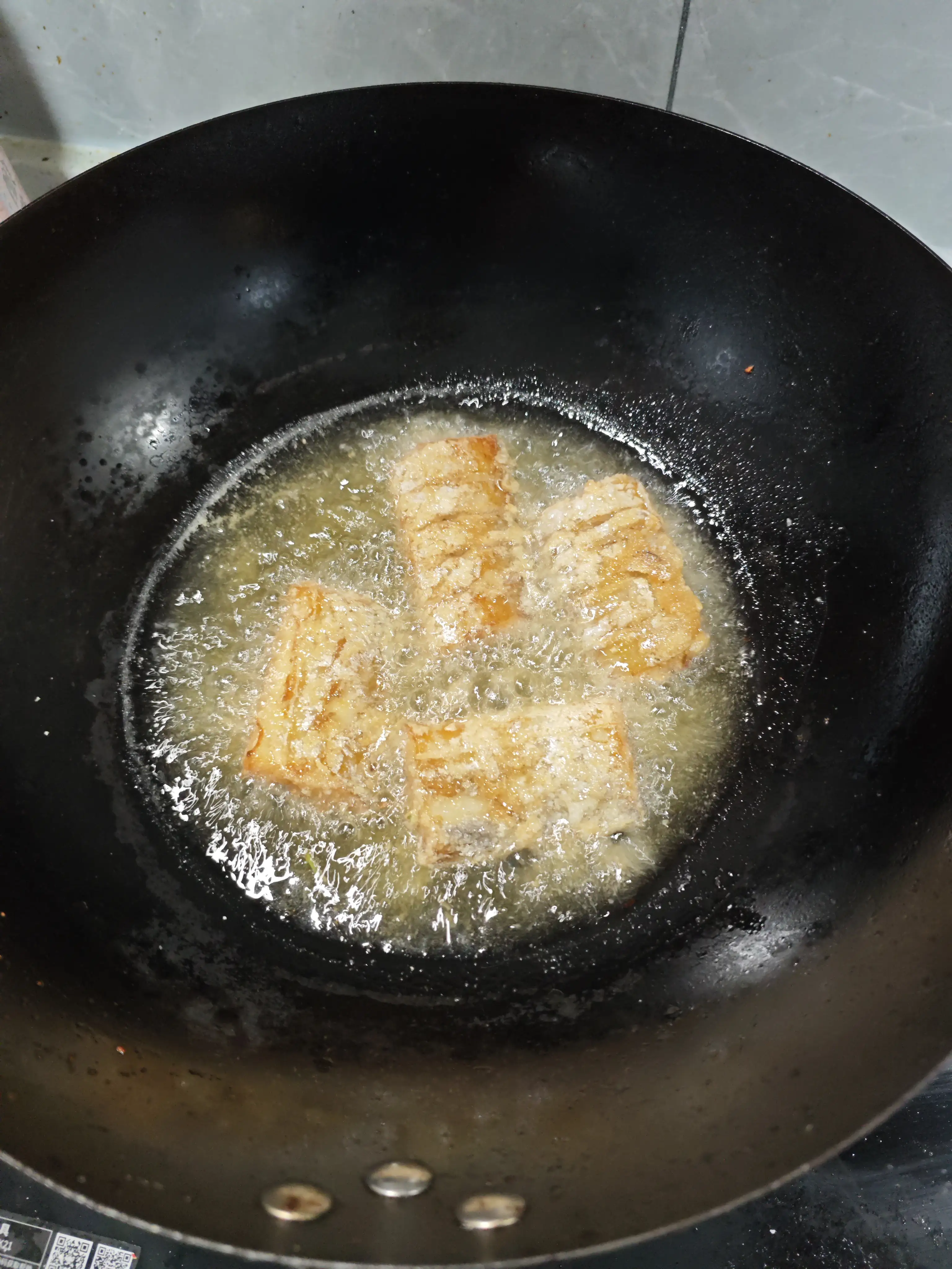炸带鱼(待改进) 发表于 2025/05/06 更新于 2025/06/12 作者 Kai 1 分钟阅读 炸带鱼(待改进) 文章内容 炸带鱼(待改进) 材料带鱼葱,姜,料酒,生抽,盐,白胡椒粉准备带鱼解冻,切段开花刀加入葱,姜,料酒,生抽,盐,白胡椒粉(终极去腥大法),腌制30分钟腌好的带鱼都裹上玉米淀粉步骤放入油中炸至两面金黄问题炸完后并不酥脆,可能是水分太多,估计要先晒干一点 卫宫家今天的饭 油炸 带鱼 本文由作者按照 CC BY-SA 4.0 进行授权 分享