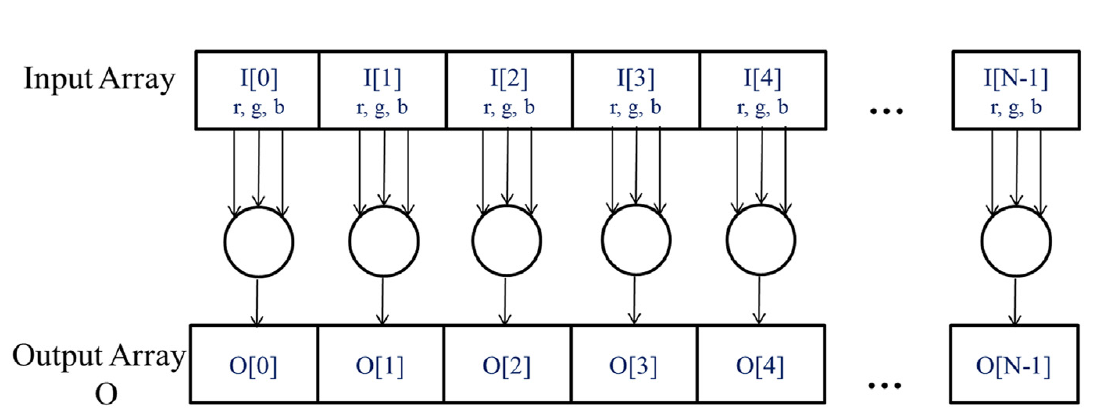 \[L=0.21r+0.72g+0.07b\]每个像素的处理很简单,且可以独立计算