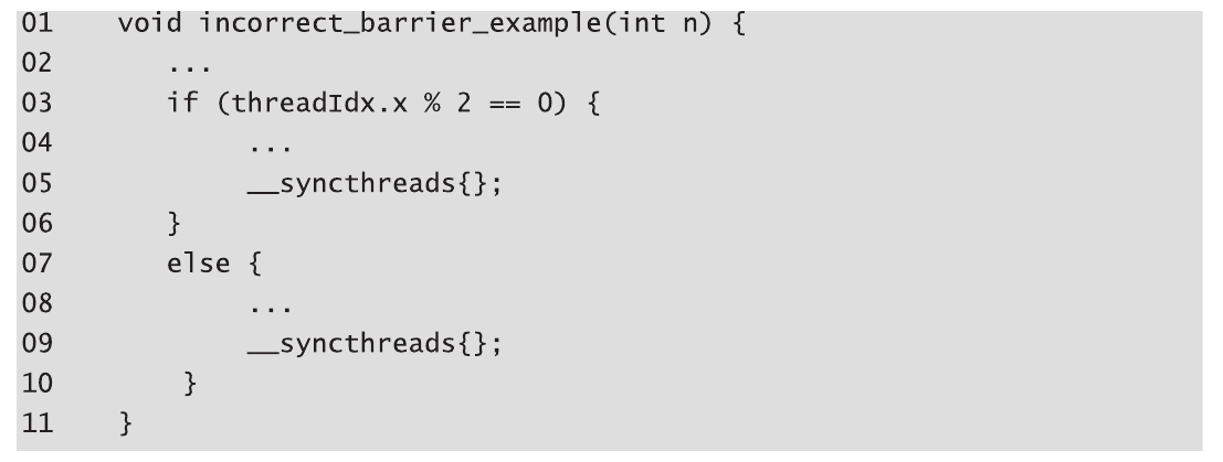 另外,对于 if-then-else 语句,如果每个路径都有__syncthreads()