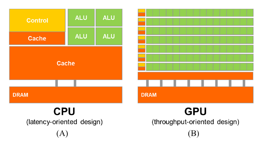 而 GPU 则是面向吞吐量设计的。GPU 的设计哲学是由快速增长的视频游戏行业塑造的,游戏的每个视频帧中会执行大量浮点运算和内存访问,而不是执行大量的控制逻辑和复杂的操作数。