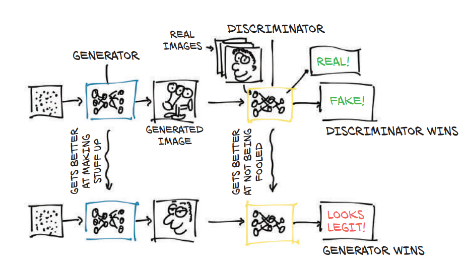 - 鉴别器:会随机收到真品和赝品,负责鉴别出是真品还是赝品。