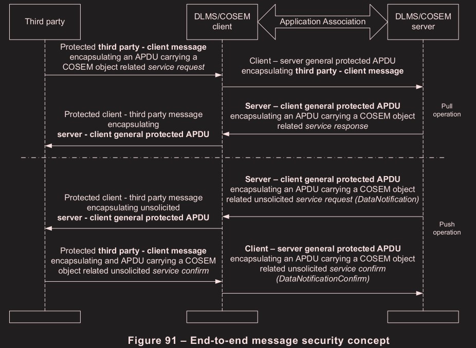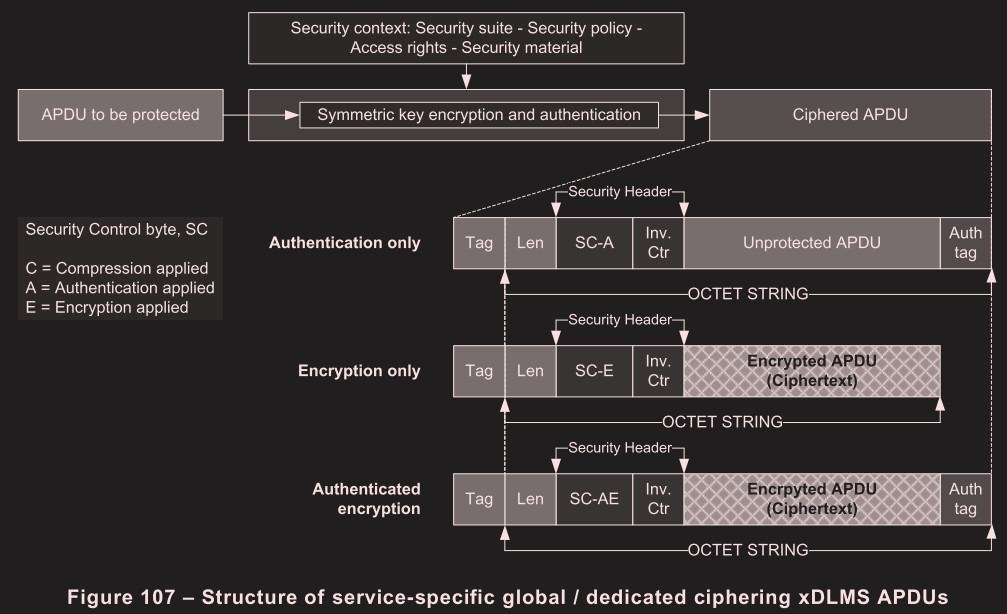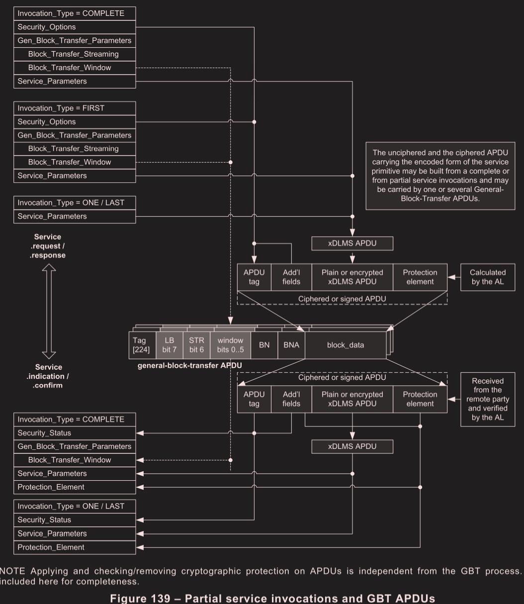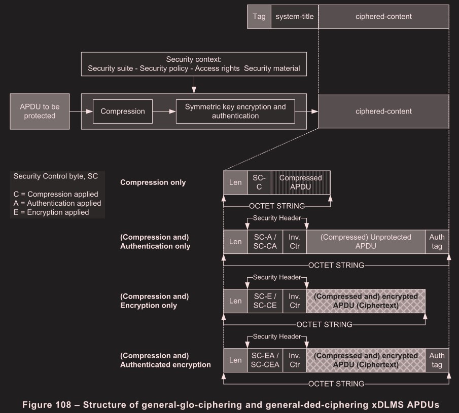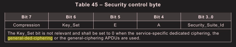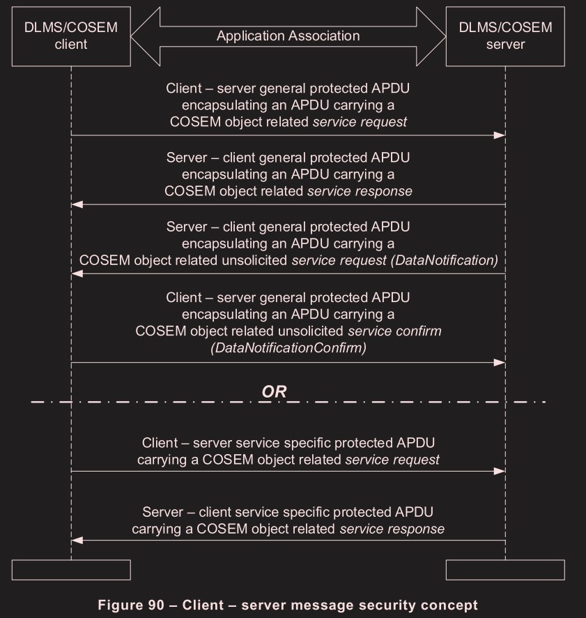 - 加密 APDU 交换,general-ciphering (originator and recipient system title)或 general-glo-ciphering (originator system title).