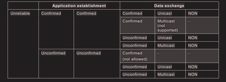 unconfirmed AA 不能传 confirmed 消息,Reliable 可靠 CoAP 传输层配置不能传输广播消息