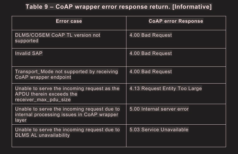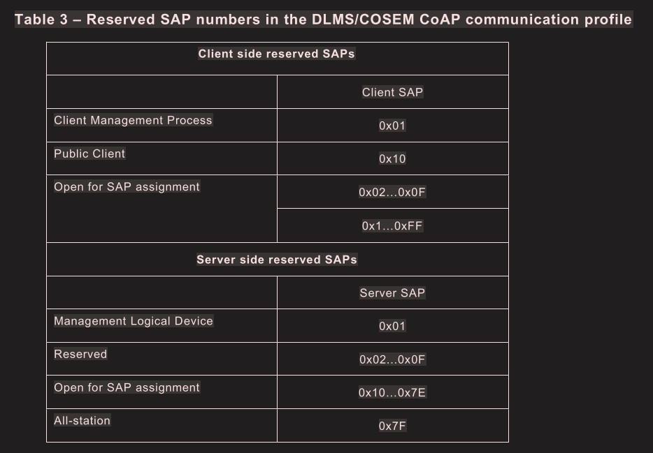 - s7.3 The DLMS/COSEM CoAP based transport layer
