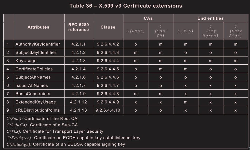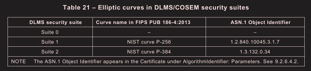 - s9.2.6.5 Suite B end entity certificate types to be supported by DLMS servers
