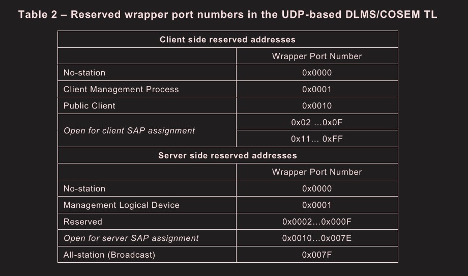 - Client_TCP_or_UDP_Port – The TCP or UDP port used for DLMS/COSEM, see 7.2;