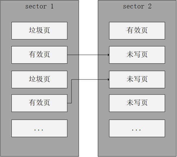 当某个 sector 内只有少数的有效数据时,可以把这些有效数据所为新记录追加到最新的备份位置,这样就让整个 sector 内的所有页都变为了垃圾数据,可以对其进行擦除来释放空间,之后该区域可以作为新的备份区。