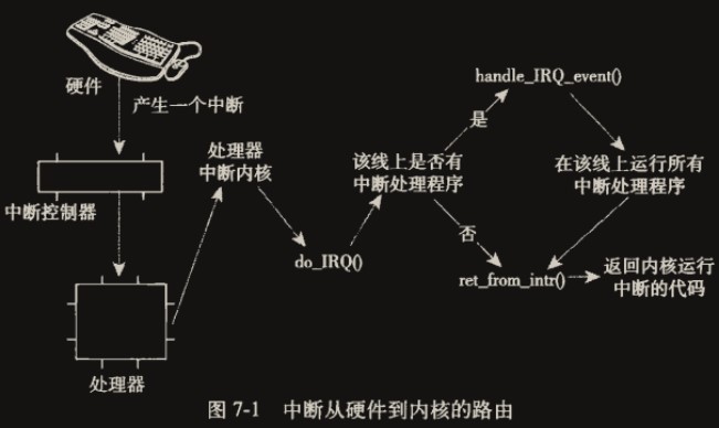 ,由硬件设备生成,并直接送入中断控制器的输入引脚中。中断控制器是个简单的电子芯片,其作用是将多路中断管线,采用复用技术只通过一个和处理器相连接的管线与处理器通信。当接收到一个中断后,中断控制器会给处理器发送一个电信号。处理器一经检测到此信号,便中断自己的当前工作转而处理中断