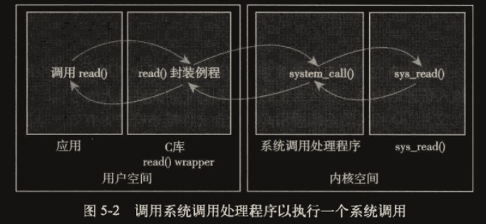 应用程序应该以某种方式通知系统,告诉内核自己需要执行一个系统调用,希望系统切换到内核态,这样内核就可以代表应用程序在内核空间执行系统调用