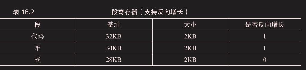 。 只要用这个反向偏移量(−1KB)加上基址(28KB),就得到了正确的物理地址 27KB