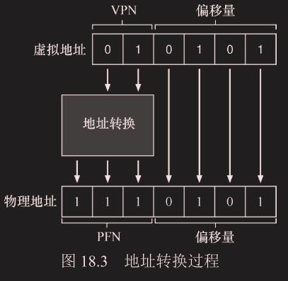 设置为 4(偏移量的位数),这样我们就可以将 VPN 位向右移动以形成正确的整数虚拟页码。例如,使用虚拟地址 21(010101),掩码将此值转换为 010000,移位将它变成 01,或虚拟页 1,正是我们期望的值。然后,我们使用该值作为页表基址寄存器指向的 PTE 数组的索引。