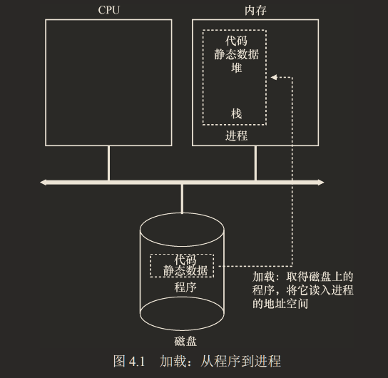 中,加载到进程的地址空间中。在早期的(或简单的)操作系统中,加载过程尽早(eagerly)完成,即在运行程序之前全部完成。现代操作系统