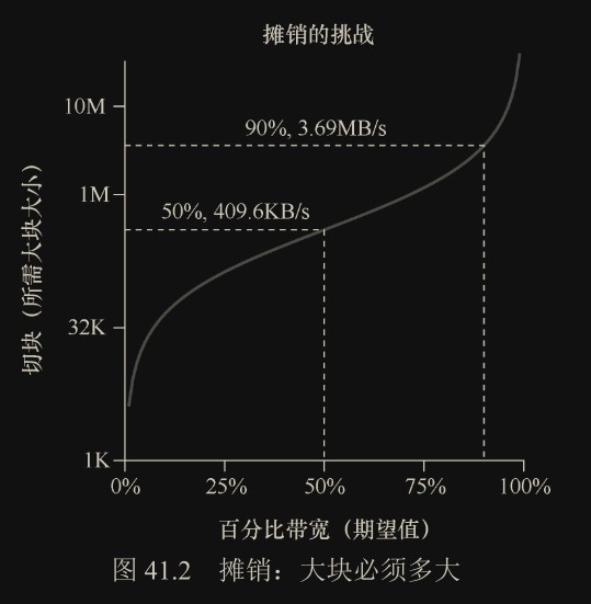 文件访问的相对常见的情况下。但当分块大小足够大时,传输耗时就能摊销掉寻道耗时。