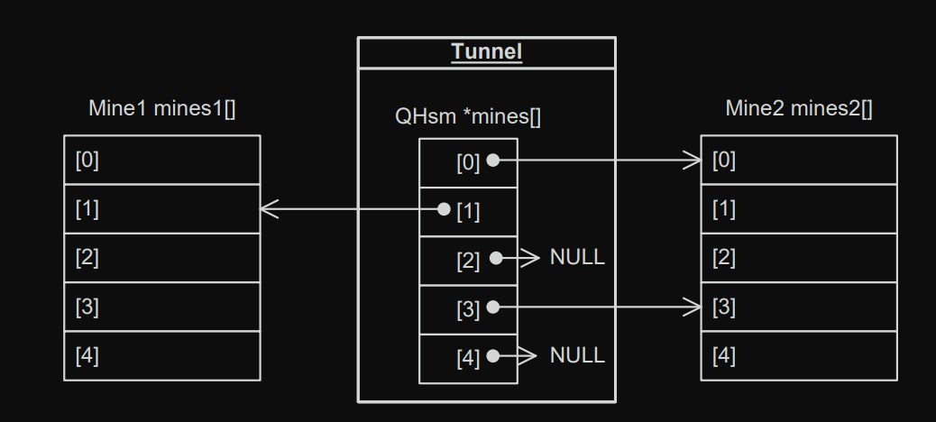 Tunnel 中的 mines 数组管理着这些 Mine 构件,每个元素是一个指向 Mine 对象(继承自 QHsm)的指针,所以对象的销毁也需要 Tunnel 管理: