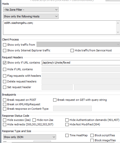 打开 fiddler 的 filter 功能,过滤如下 url: